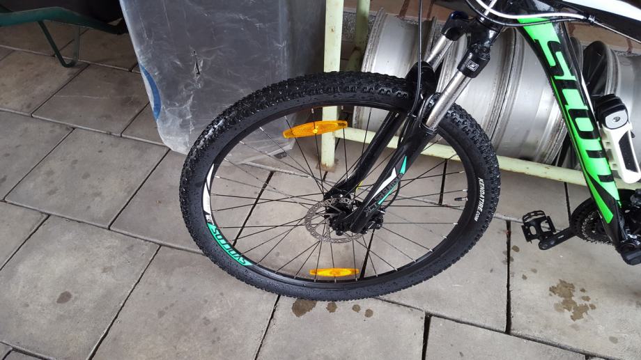 Bicikl je kupljen prošle godine u 5. mjesecu. Još je pod garancijom. Dolazi sa računom i svom papirologijom od kupnje. Korišten je samo prošlo ljeto. Dolazi sa original sjedalom i ovim udobnijim koji je na njemu. Uz to dolazi i lokot vrijednosti 500kn na ključ koji je pričvršćen na ramu. Bicikl je u odličnom stanju vožen je samo na i sa posla.