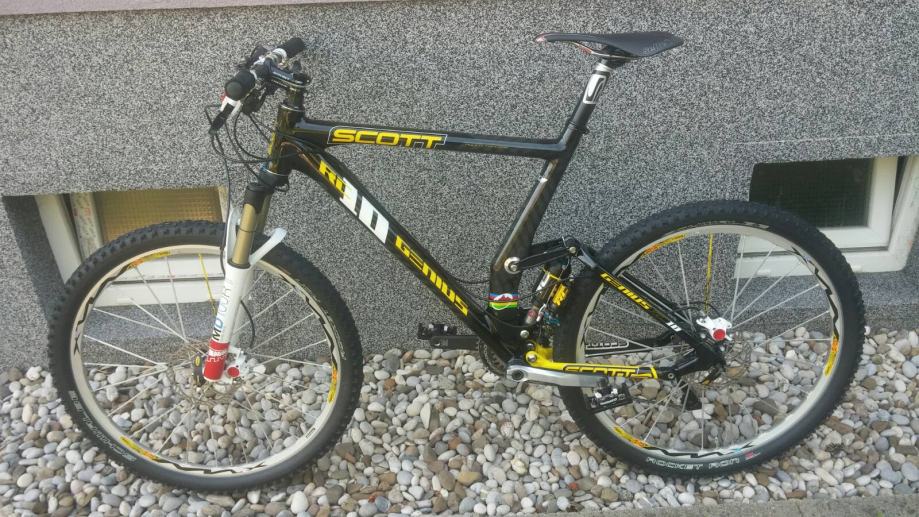 Prodajem Scott Genius RC10, carbon, veličina L. Masa 10 kg. U savršenom stanju, bez ijedne crtice, vožen par puta. Uloženo preko 5000 EUR. Dugo i pažljivo slagan. Prodajem zbog nedostatka vremena. Oprema full Shimano XTR. Vilica Magura Durin Race MD R100, remote lockout, zadnji shock ima remote s tri položaja: lock; pola hoda i cijeli hod, kotači Mavic Crossmax SL, kočnice Magura Marta SL magnesium, karbon ručice, FSA K force carbon upravljač, sjedalo Selle Italia SLR Titanium, lulica Ritchey WCS...