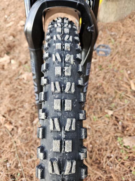 Gume: prednja Maxxis Minion DHF 2.5“ (kupljena nova u 05.2023.), stražnja Maxxis High Roller II 2.4“ Tubeless (kupljena nova u 08.2024.)
