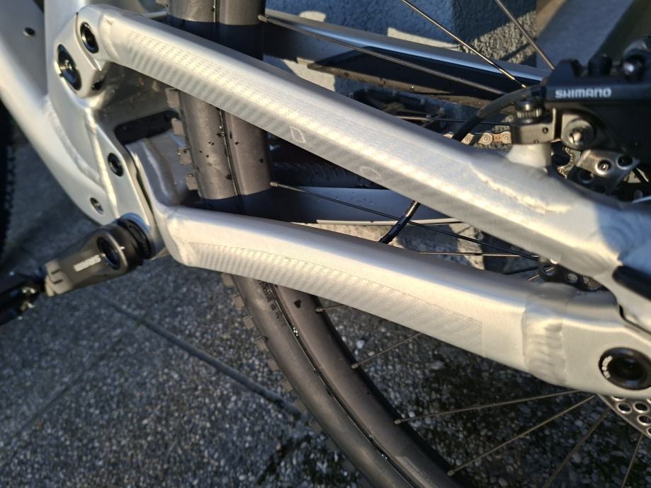 * Zaštita okvira: okvir je oblijepljen prozirnom zaštitnom folijom (vidi se na slikama) kako bi se spriječile ogrebotine od kamenčića, lanca i transporta. Ispod rame stavljena silikonska zaštita od udara kamenčića.
