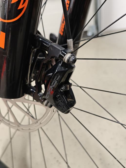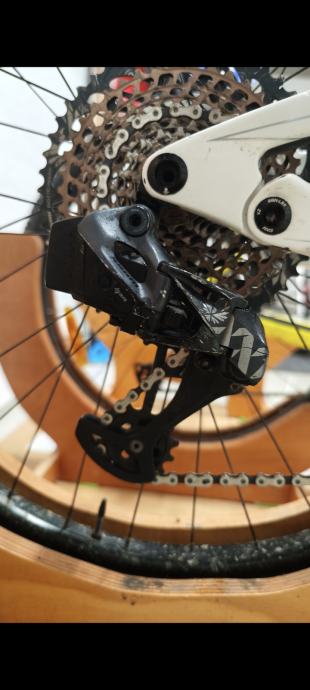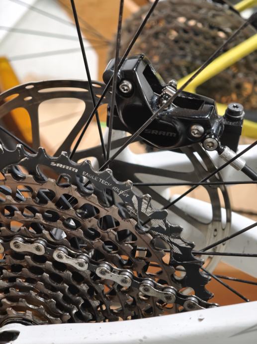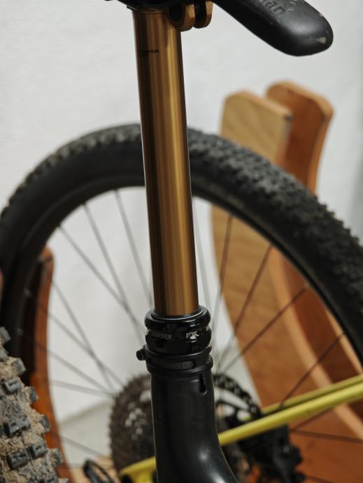 Vrlo je lagan jer ima karbonske obruče, karbonski RaceFace upravljač (kormilo) i kompletan SRAM XX1 AXS mjenjač s karbonskim pogonskim polugama (krankovima). Vilica je Fox 38, amortizer je Fox Float Coil, a kočnice su SRAM Code RSC.