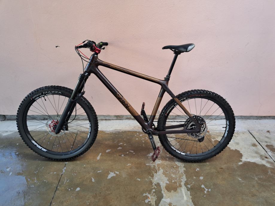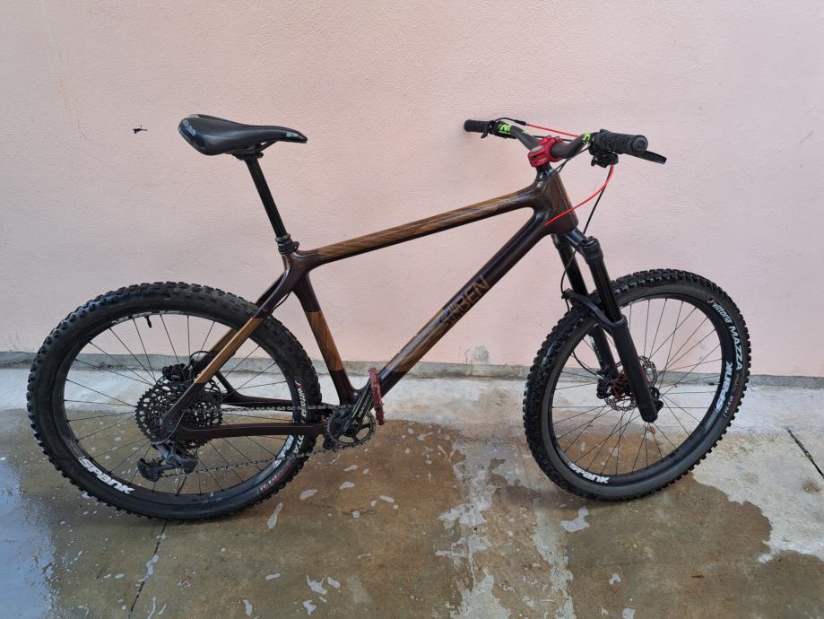 Prodaje se unikatni bajk,bambus prednji trokut iza laminirane letvice,spojevi epoxy i komadići karbona.Bajk je između L i Xl veličine.