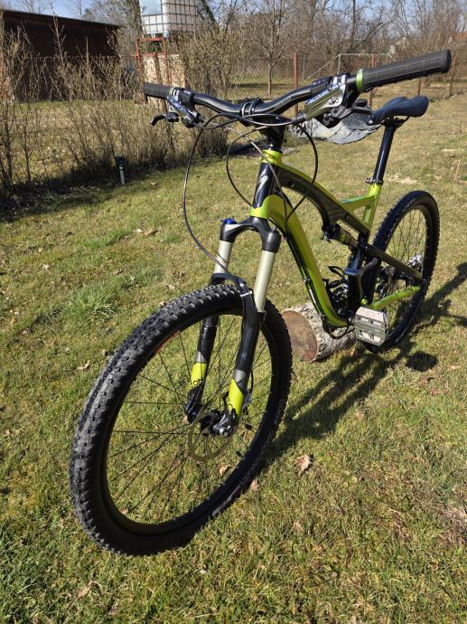 M4 hydroformed tubing, sealed cartridge bearing pivots, disc only, Command Post routing, replaceable deraileur hanger, bolt on cable guides, 120mm travel