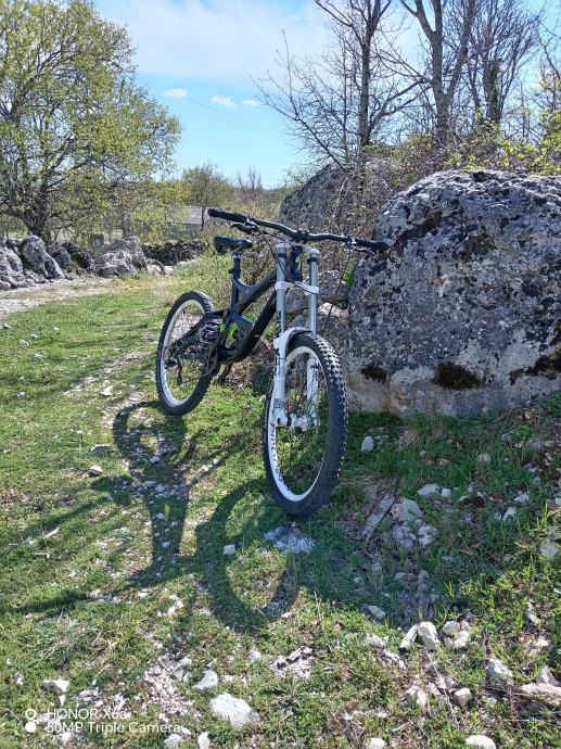 Rama bicikle je nuništiva zbog geometrije sa jako jako čvrstim i kvalitetnim karbonskim felgama syncros.Napravljena je i opremljena za skokove i strme staze.