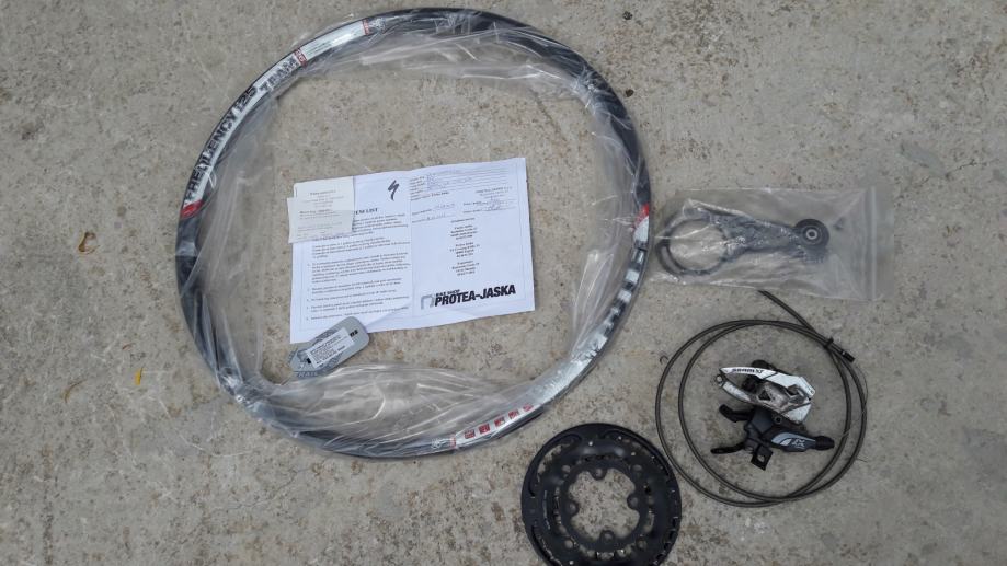 Seat post:Rock shox reverb, napravljen tubeless na obje gume, promjenjen volan i stavljen Spank Spoon 762, skinut je prednji mjenjač i zupčanici koji dajem uz biku tako da se trenutno vozi na 1x10 te je naprijed stavljen zupčanik narrow wide 30t, promjenjen je zadnji obruč i stavljen WTB frequency i25, prednji nisam promijenio ali ga dajem uz biciklu, također uz biku dajem i rezervni par pakni, pedale ne idu uz bike.
