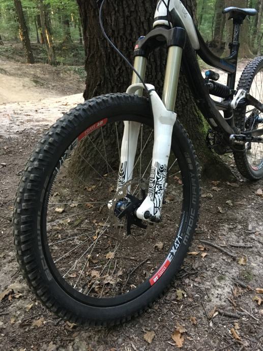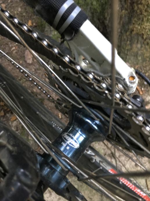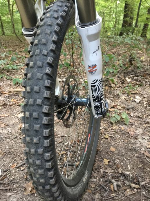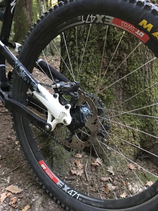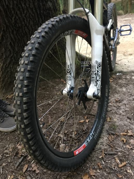 Prednji kotac; Hope Pro 2 naba (gunsmoke blue), Alpine III zbice, DT Swiss EX 471 obruc,Guma Magic Mary 26x2,35
