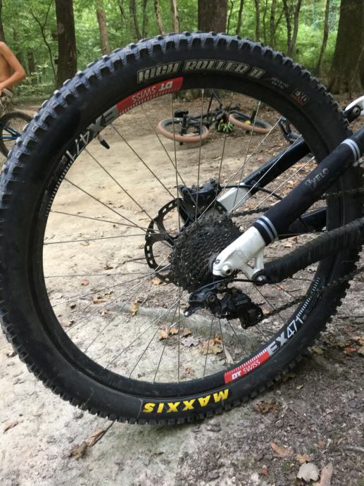 Zadnji Kotac: Hope Pro 2 naba (Gunsmoke blue), Alpine III zbice, DT Swiss EX 471 obruc, Guma Maxxis High Roller II 26x2.4