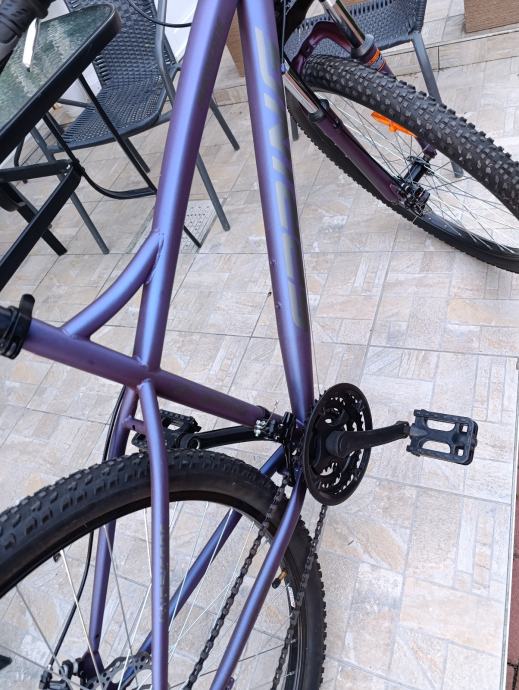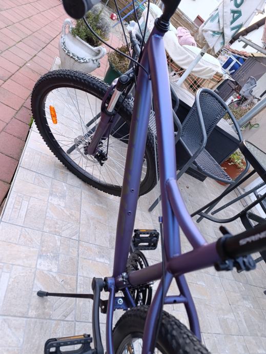 Prodajem novi MTB bicikl Spring Hurricane, hardtail okvira veličine L (48-52 cm), s kotačima promjera 27.5 inča. Okvir je u lijepoj ljubičasto-plavoj metalik boji koja mijenja ton ovisno o kutu svjetlosti. Bicikl je potpuno nov, kupljen pred zimu kćeri ali joj je prevelika Rama.