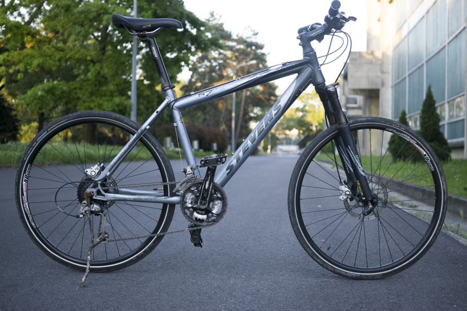 Bicikl se zove STEVEN s7. Točan popis dijelova nemam strpljenja slagati. Vidi se na slikama, a mozemo se i čuti oko detalja. Godina proizvodnje je 2011 ako me gugl ne vara. Na bajku je promijenjeno 90% dijelova i sve je funkcionalno. Kotači su novi, gume su nove, kočnice nove, kazeta nova, lanac nov. Rastaviš ga i prodaš dijelove i zaradiš pare koje ću tražit. Super za nekoga tko traži dobar,pouzdan i neupadljiv bicikl. Veličina je nekakav medium. Ja sam oko 180 i meni je bio mali. Tražim za njega 1763 novaca. Možemo se cijenkat, možemo izmišljat kojekakve zamjene i kompenzacije. Samo da mi to više ne stoji na balkonu.