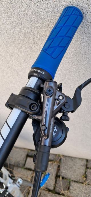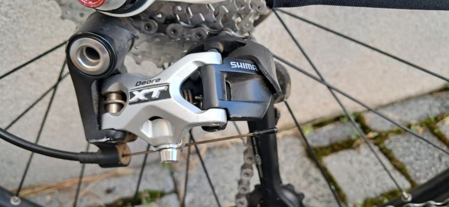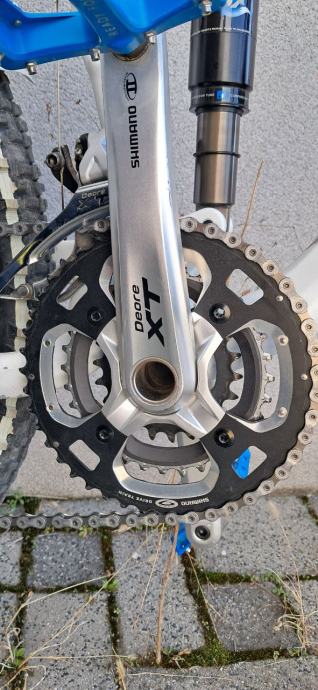 Prednji pogon, zadnji pogon, kurble pedala, kočnice naprijed i nazad, ručice mjenjača, ručice kočnica, lanac sve XT, kupljeno prošle godine, nešto ove. Nema ni 200 km iza sebe. Pogon je 3x9 brzina. Prednja vilica FOX Talas 150 mm, zadnji amortizer/shock Fox Float RP23.