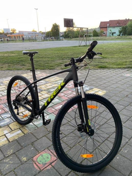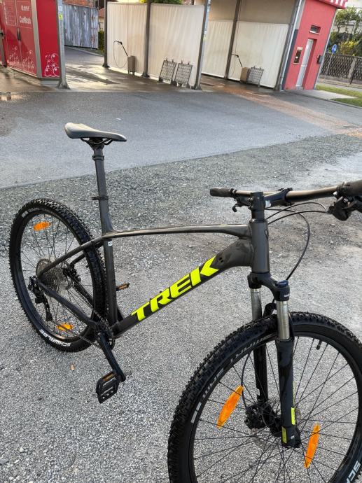 Prodajem Trek Marlin 6 iz 2023. godine, MTB bicikl s kotačima od 29 inča. Radi se o muškoj geometriji rame u XXL veličini (58-61cm), što ga čini pogodnim za više osobe. Bicikl je opremljen disk kočnicama i kvalitetnom opremom karakterističnom za Marlin seriju. Ram je u tamnoj boji sa žuto-zelenim detaljima Trek logotipa. Kotači su veliki i stabilni, a vilica je suspenzijska za udobniju vožnju po neravnim terenima.