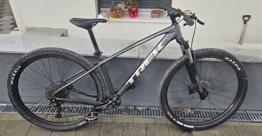 Prodajem Trek Marlin 6 MTB bicikl u tamno sivoj boji. Radi se o hardtail geometriji s muškim okvirom veličine M (44-47 cm) i kotačima od 27.5 inča. Gume su Maxxis, a bicikl dolazi opremljen disk kočnicama. Okvir je u dobrom stanju, a sve komponente rade ispravno.
