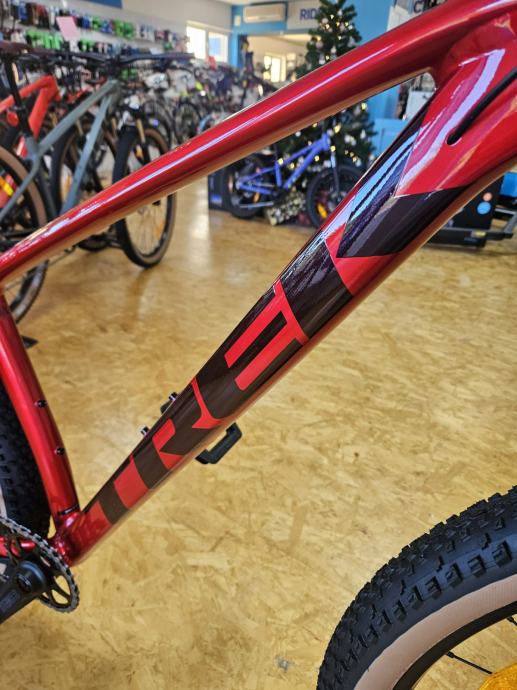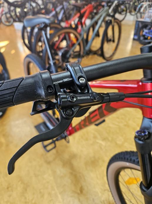 A lightweight Alpha Platinum Aluminium hardtail frame with modern XC geometry and 148 mm boost spacing for stiff support under power. 120 mm of trail-smoothing front suspension from a RockShox Recon Gold RL fork with Debon Air spring, Motion Control damper and lockout. A clean shifting blend of 12-speed Shimano XT and SLX components, Tubeless-Ready Bontrager Kovee wheels, a Bontrager Line dropper post with internal routing and hydraulic disc brakes.