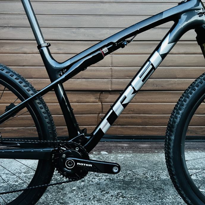 Prodajem full-suspension XC bicikl Trek Supercaliber SLR 9.9 XTR Gen 2 2025 u veličini L. Ova veličina odgovara za visinu vozača 180 - 190 cm. Bicikl je kao nov jer sam s njim do sad napravio svega 1500 km. Uz bicikl dolazi doživotno jamstvo na okvir koji je karbonski OCLV SLR karbon, najjači u seriji karbonskih Trek okvira. Bicikl ima grupu mjenjača Shimano XTR 12-brzina i opremljen je powermetrom Rotor Kapic Carbon s kurblama od 170 mm i Rotor ovalnim lančanikom od 36T (lančanik je nov). Na biciklu su karbonski XC kotači OC XC TEAM s unutarnjom širinom obruča od 30mm. Cijeli okvir je zaštićen s folijom RideWrap (tailored opcija točno po tom modelu i veličini okvira) tako da okvir nema niti jedne crtice po sebi). Cijena je fiksna. Zamjene me ne zanimaju.