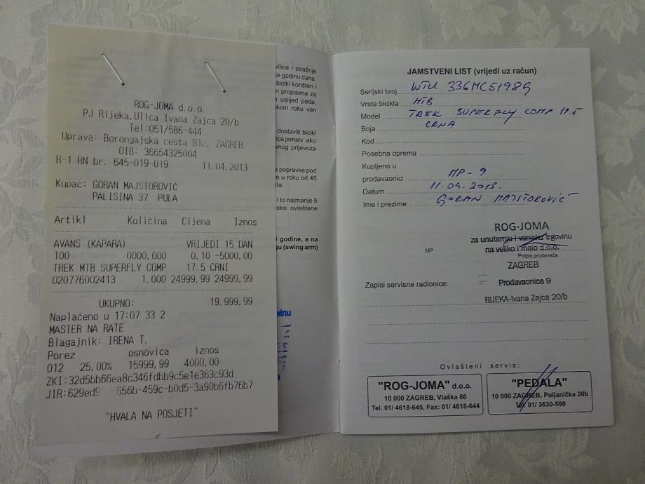 Prodajem MTB iz naslova, 1. vlasnik, račun, 2013.g
