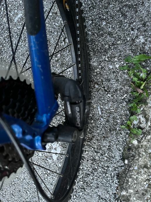 Bicikl nije puno vožen, ima nešto ogrebotina od naslanjanja na pod/zid.