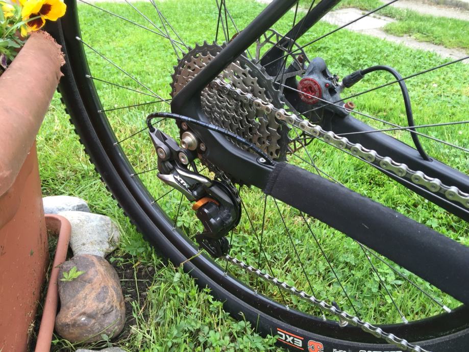 Tvrda vilica carbon , full XTR 1x11 , kazeta xt m 8000 11-42 , kočnice Avid Juicy 7 carbon , kotači WTB / Sapim / Veltec - tubeless 1550 gr.