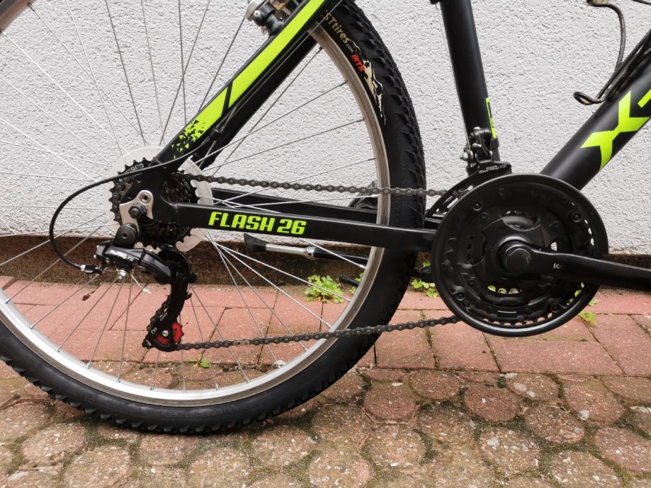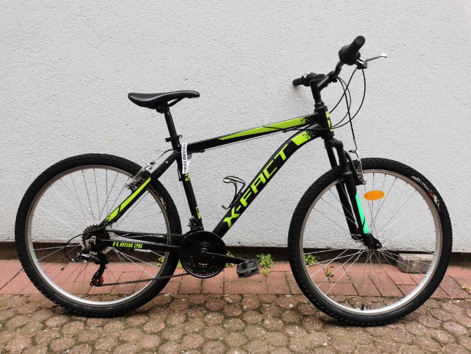 Prodajemo aluminijski Mtb bicikl X-Fact Flash 26" vel.M (za osobu od cca 160 do 180 cm visine ) .Bicikl je u odličnom stanju, uredno servisiran i tehnički ispravan. Ima nove gume. Ima 21 brzinu shimano. Moguća prodaja na kartice do 12 rata bez kamata. Cijena je fiksna. Na rabljeni bicikl dajemo garanciju od 6 mjeseci. Osigurana dostava u kartonskoj kutiji po cijeni od 15 eura (za otoke 20eura) za područje HR. Pogledajte i naše ostale oglase na našem njuškalo linku. Trgovina Extreme sport Osijek.