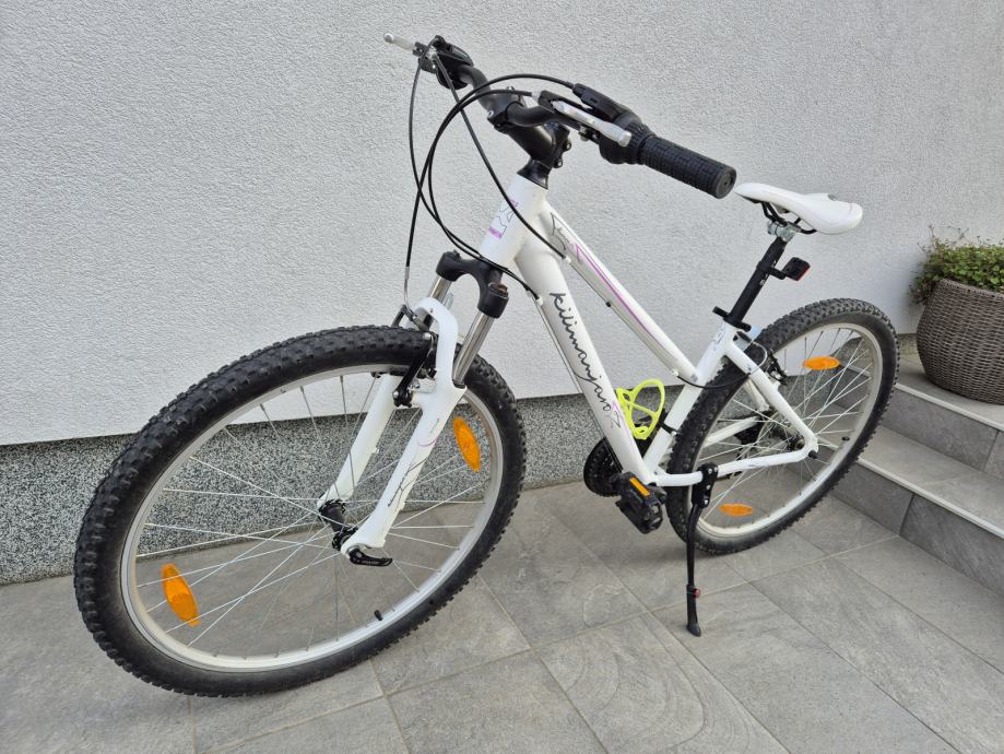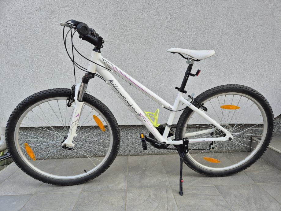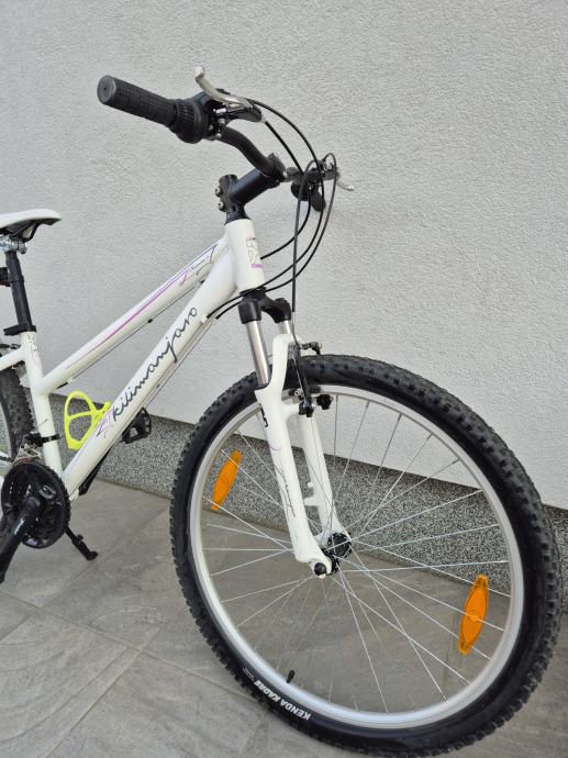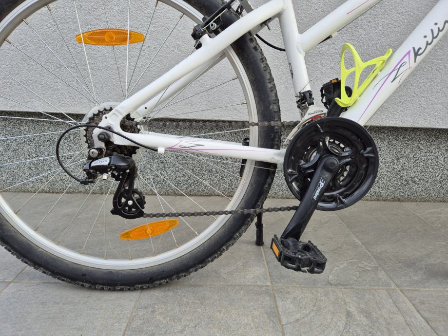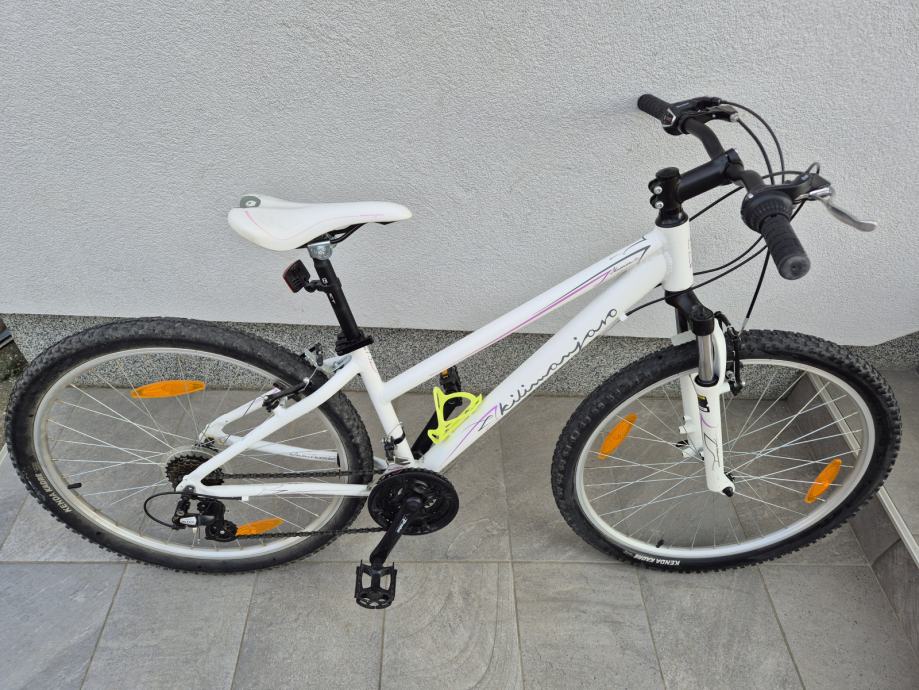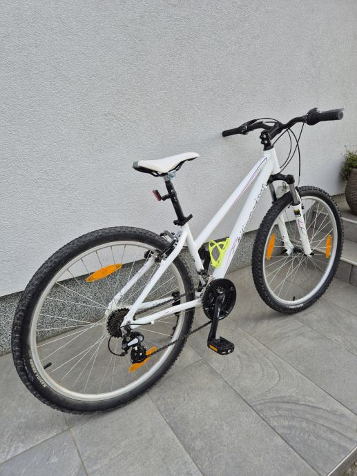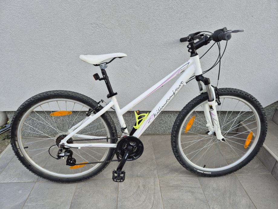 Ženski MTB bicikl kupljen u Hervisu, Kilimanjaro X Fact Mission, veličina 15. Dobro opremljen ženski brdski bicikl sa Shimano mjenjačem od 21 brzine. Alu felge Kenda, ovjesna vilica Zoom, težina 14,6 kg, mjenjač Shimano ALTUS 21x. U super stanju, jako malo korišten i cijelo vrijeme držan u zatvorenom i suhom prostoru. Visina za koju je kupljen je 175 cm, odgovara i drugim visinama jer se volan i sjedalo podešavaju.