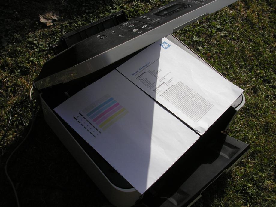 Mlaznice pisača su na kazetama sa tintama, trenutno ima CMY, black je prazna, dovoljno za RADNI TEST