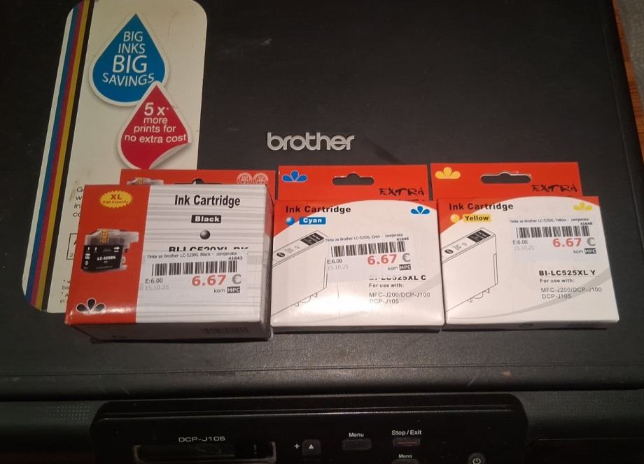 Brother DCP-J105 - 3 u 1 - pisač, skener kopirka, ispravan, sa svim kablovima i dodatnim tintama.