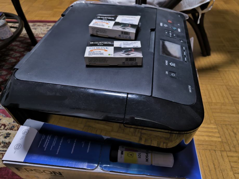 Uglavnom, svih tinti još ima osim tanke crne, ali te imam 2 nove. Loše je slikano i zaslon na pisaču izgleda puno lošije nego to jest.