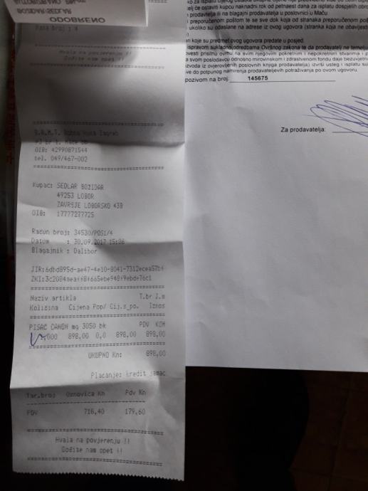 Novo ispravno izvrstan rad nema boje potrosena radio samo 2 puta.cijena fixna 500 kuna ulosci stavljeni novi original.545 black i boja 546 xl original.360 kuna su samo ulosci.cijena printera je 500 kuna novi ulosci stavljeni rad izvrstan spaja se sa smartphoneom wifi.