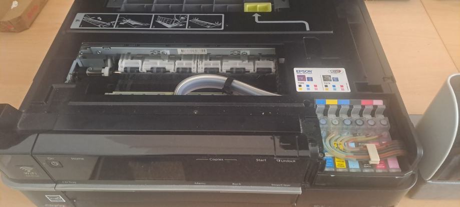Printer iz naslova, sve kao na slikama, piše, skenira kopira, dodatno opremljen rezervoarima za 75 mll tinte, auto obostrani ispis, sve kao na slikama, ispravan očuvan 9/10 piše i na CD-DVD medije