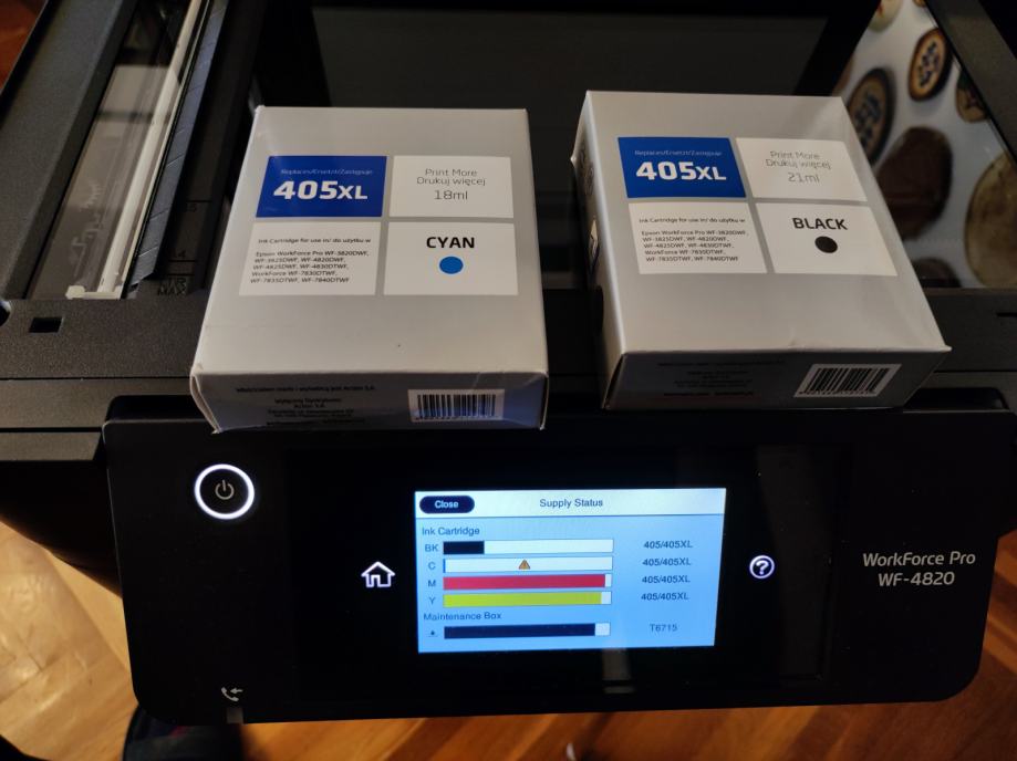 Prodaje se jer imam dva, a ovaj ću zamijeniti sa fotografskim printerom pa mi više ne treba kao AIO. Originalne kartuše su relativno skupe no mogu se kupiti zamjenske od kojih preporučam ActiveJet koje sam osobno koristio i nema nikakve razlike u kvaliteti u odnosu na originalne a odlične su cijene. Trajanje XL tinte je 1000 do 1200 stranica ovisno o ispisu a sama tinta košta oko 10€.