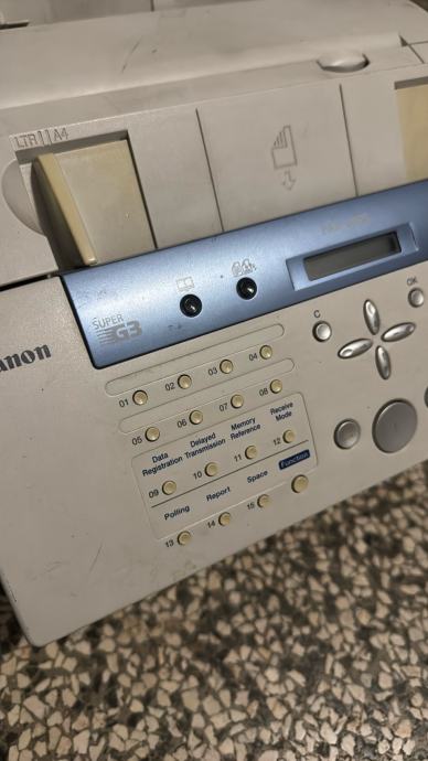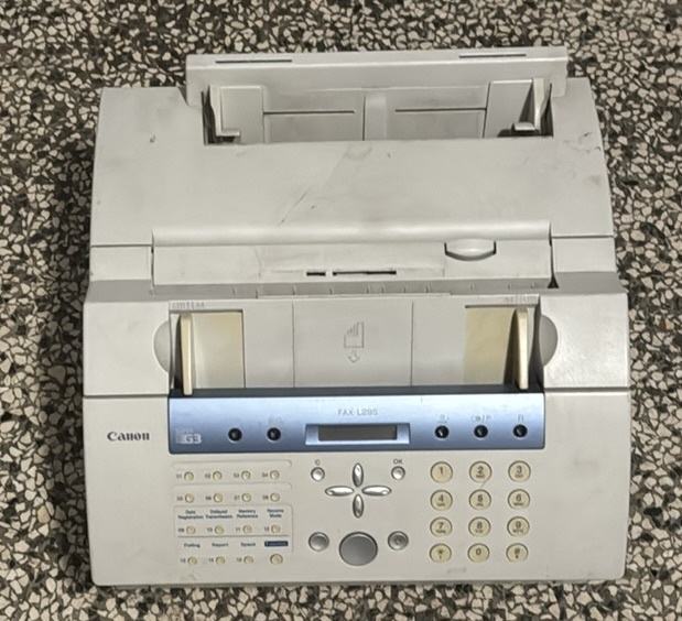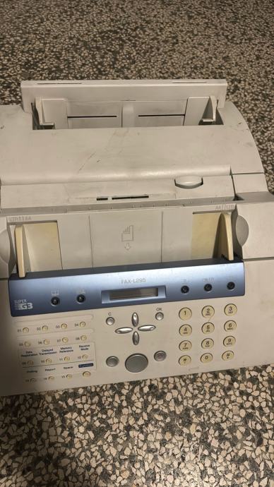 Prodajem rabljeni faks Canon L295. Radi se o multifunkcijskom uređaju koji kombinira funkcije faksa, kopiranja i printanja. Uređaj je bijele boje s plavičastim upravljačkim panelom, opremljen numeričkom tipkovnicom, LCD zaslonom te ulagačem papira. Podržava Super G3 standard za prijenos faksa.