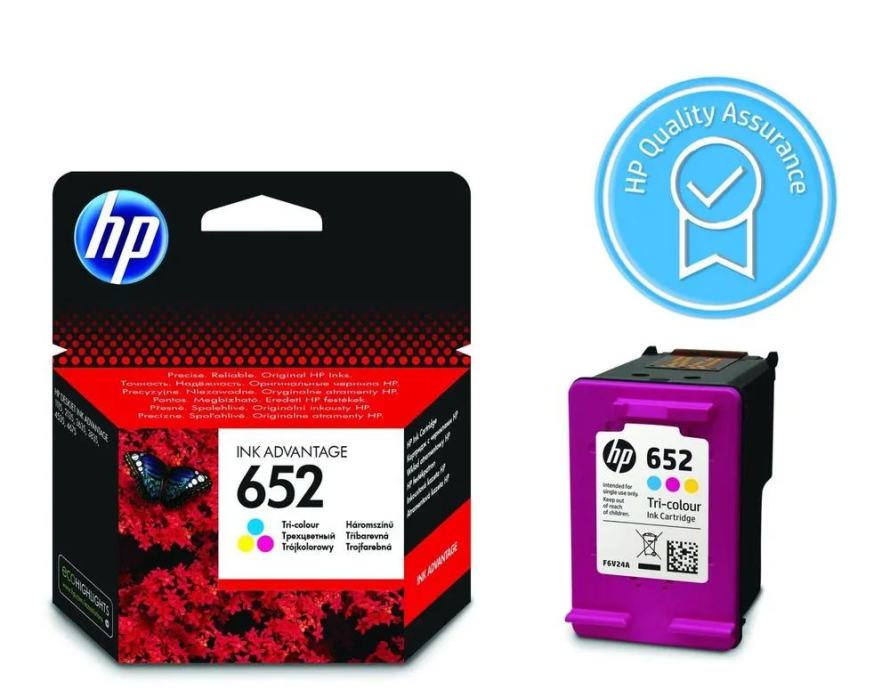Koristi HP 652 tinte, crni (F6V25AE) i u boji (F6V24AE) .