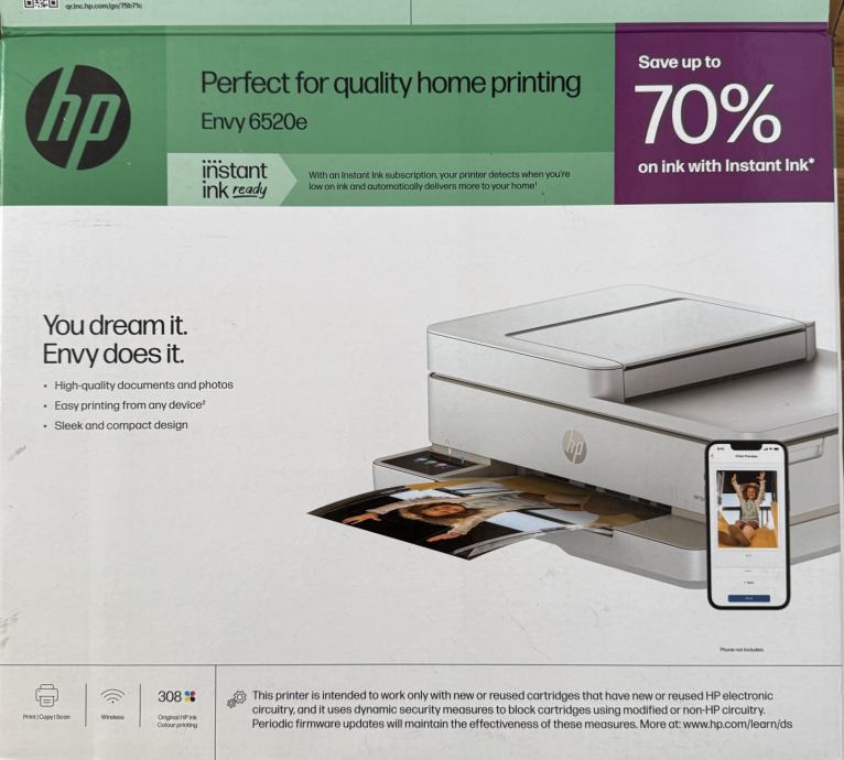 Kvaliteta ispisa na HP Envy 6520e izuzetna je, s razlučivošću do 1200 x 1200 dpi. Bilo da ispisujete tekstualne dokumente, grafike ili fotografije, možete biti sigurni da će rezultati biti oštri, jasni i precizni. Boje su živopisne, a tekst je oštar i lako čitljiv, što je ključno za profesionalne prezentacije, izvještaje, školske projekte ili osobne dokumente. HP Envy 6520e također podržava ispisivanje fotografija visoke kvalitete, idealno za obiteljske uspomene i stvaranje personaliziranih poklona.