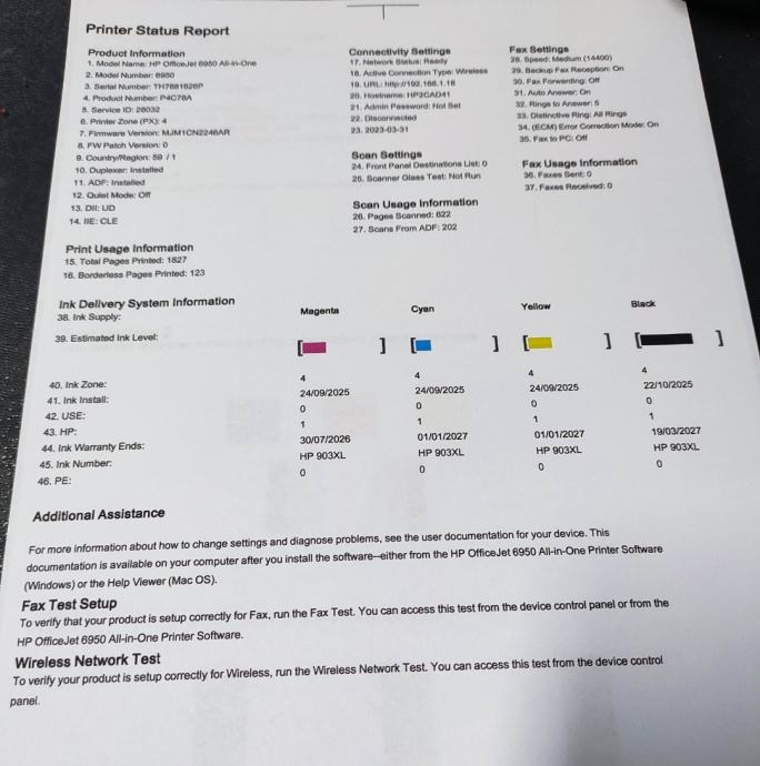 Jedini nedostatak mu je što smo ga premalo koristili pa se povremeno zaštopa glava. Onda stavimo u opcijama 1-2-3 čišćenje glave i pisač opet radi kao nov. Prilažem i slike gdje se vidi da pisač lijepo ispisuje dokumente.