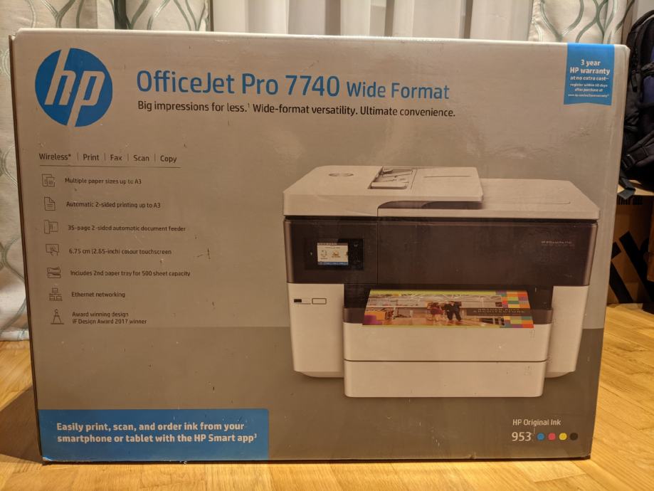 Prodajem neotpakirani HP OfficeJet Pro 7740 multifunkcijski printer. Omogućava printanje, skeniranje i kopiranje do A3 formata.