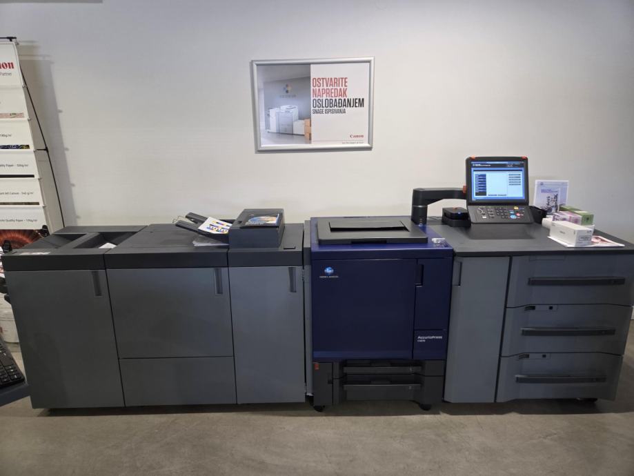 KONICA MINOLTA AccurioPress C4070 je napredni digitalni produkcijski stroj namijenjen za profesionalni ispis u visokoj kvaliteti. Odlikuje se brzinom ispisa do 71 stranice u minuti, čime omogućuje visoku produktivnost i učinkovitost u svakodnevnom radu. Podržava širok raspon medija – od tankih papira do debljih kartona i omotnica – te omogućuje ispis na duge formate do 1.300 mm, što ga čini izuzetno fleksibilnim za različite potrebe.