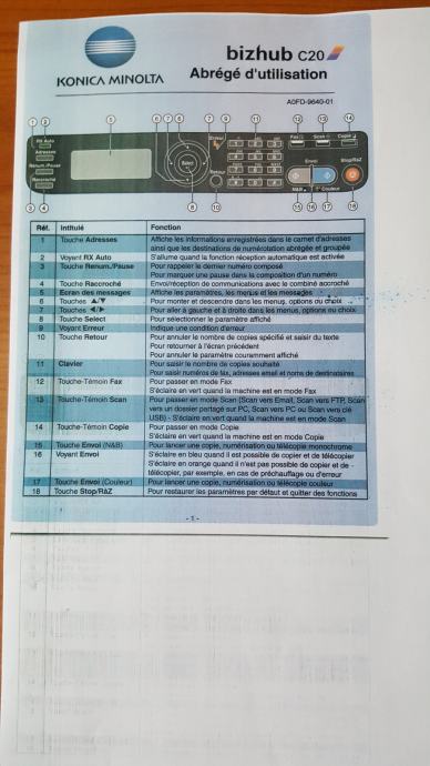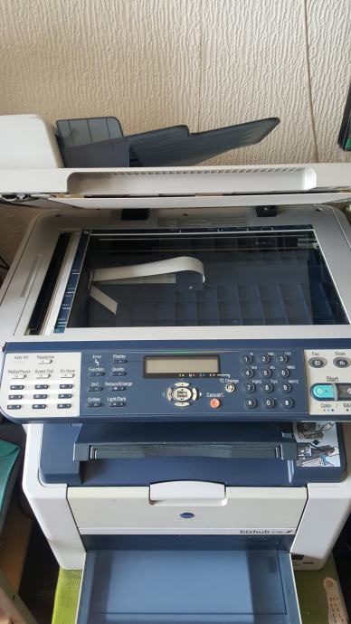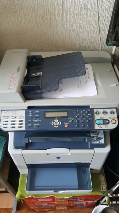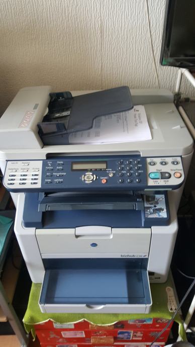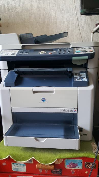 KONICA MINOLTA bizhub C10 je COLOR profesionalni, laserski multifunkcionalni all-in-one (copy, print, fax, scan) uređaj manjih dimenzija koji se odlikuje kvalitetom i ekonomičnošću. BIZHUB C10 učinkovito donosi 5 ppm u boji ili 20 ppm B&W A4 kopija i nudi značajke kao što su zoom, 2-u-1, obostrani ispis, automatsko prepoznavanje boje, razlučivost do 600x2400 dpi, integrirani ADF za automatsku obradu do 50 stranica dokumenata, skeniranje do 5 stranica u boji ili 13 B&W izvornika u minuti, automatsko multi-page skeniranje originala preko ADF-a, skeniranje u e-poštu, TWAIN skeniranje, skeniranje-preko-WIA i mogućnost spremanja kao PDF ili TIFF datoteke, faks od 4 MB memorije koji omogućuje primitak, vrijeme slanja, auto ponovno biranje i automatsko smanjenje dolaznih faksova, a funkcionalni adresar daje korisniku mogućnost pohranjivanja do 125 pojedinačnih destinacija ili kombiniranja primatelja u skupine. Konačno, C10 može biti spojen na računalo putem standardnog USB 2.0 sučelja, a njegova mrežna veza može pružiti pristup pisaču za više korisnika. Korištenje i održavanje ovoga uređaja su jednostavni, a sa svojim malim dimenzijama C10 se može postaviti gotovo bilo gdje. Uređaj, koji je bio korišten za privatne potrebe, već duže vrijeme stoji neupotrebljavan i potreban mu je servis.