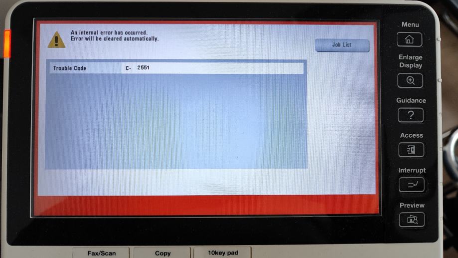 Uređaj funkcionalan, ali prijavljuje grešku C2551