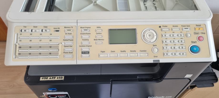 Prodajem korištenu Konicu Minoltu bizhub 226. Printer, scaner i kopirka (crno bijeli print) sa 240000 isprintanih stranica. Kupljena preko firme i prodaje se uz dobivanje računa. Redovno servisirana u Kopitehni. Kopirka bi uz zamjenu potrošnih dijelova trebala printati do 400000 stranica.