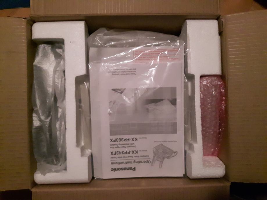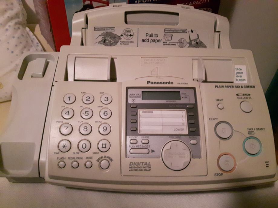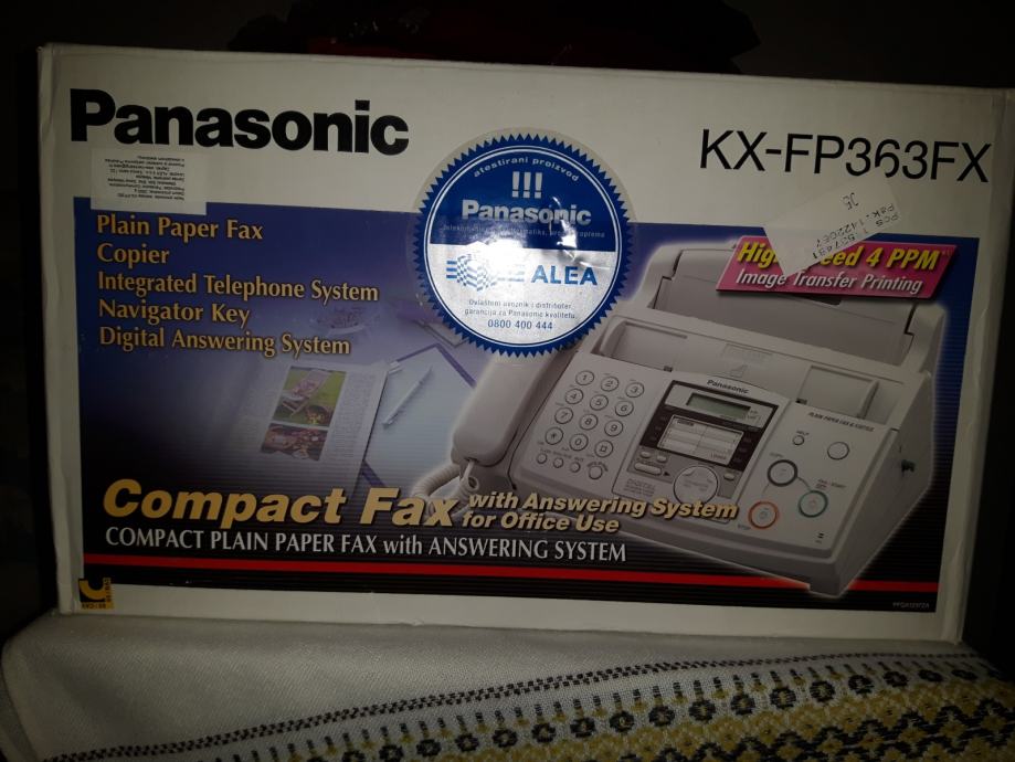 Potpuno ispravan uređaj Panasonic KX-FP 363 u originalnoj kutiji sa pripadajućom opremom i uputstvima na hrvatskom jeziku.