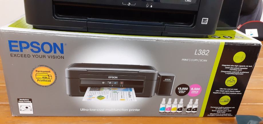 Multifunkcijski printer Epson L382 print/scan/copy, ink tank sadrži nove boje, star 2,5 godine.