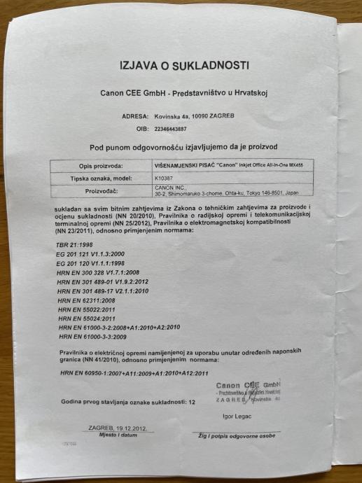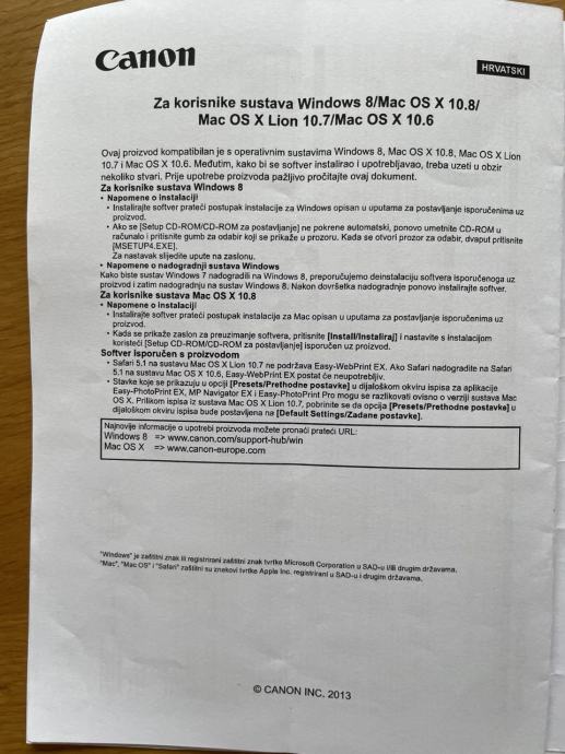 Printer i scanner PIXMA MX45,5 gotovo novi, prodajem za 100 €. Scanner je odličan. Cartridge je tvornički no zbog stajanja funkciju printanja treba riješsiti. Ima svu tvorničku dokumentaciju.