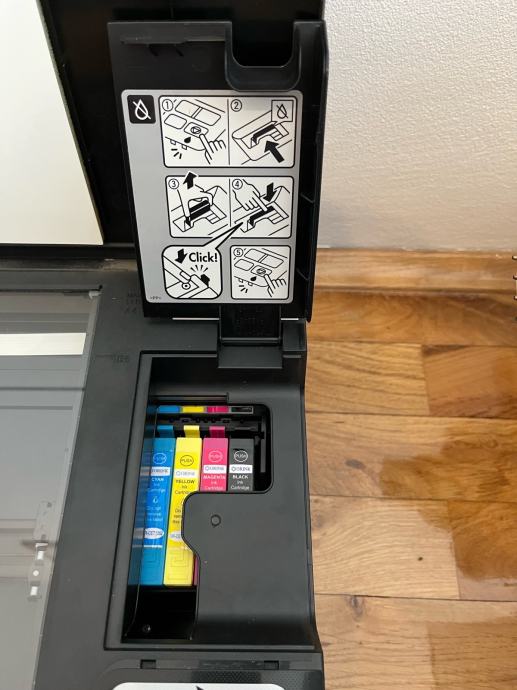 Malo koristen multifunkcijski printer sa skenerom, ink-jet tehnologija ispisa, 4 patrone boje, potrebno ubaciti novu boju i spreman je za ispis.