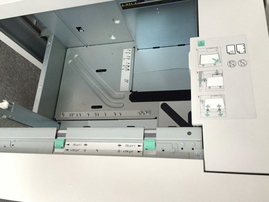 U cijenu nije uključena "bypass" ladica (Tray 5) koja se prije ugradnje mora preseliti sa bočne stane stroja i učvrstiti na ovu veliku ladicu te povezati kabelom.