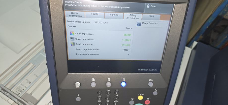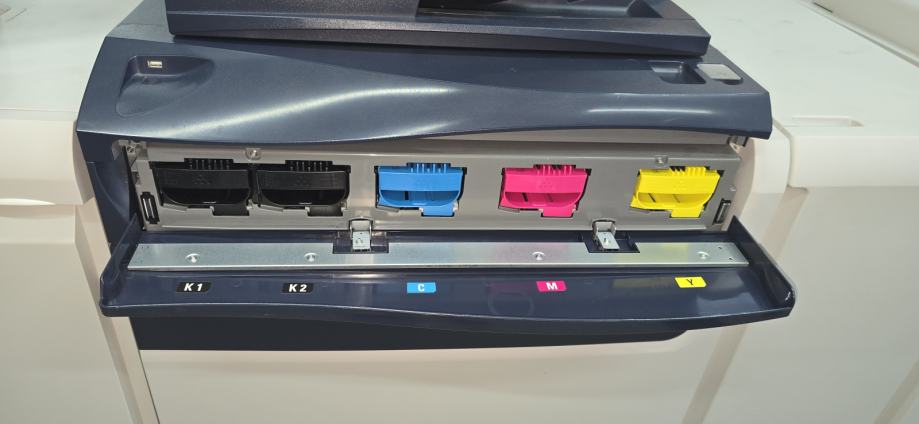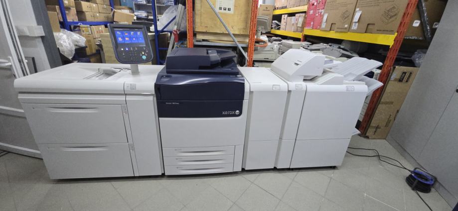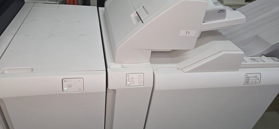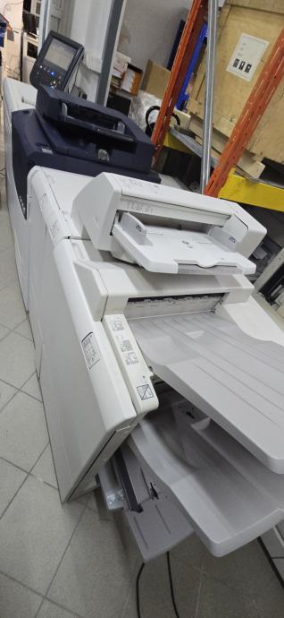 Ukratko o mogućnostima ovog stroja: ispisuje na papire do 350gr (najviše u klasi), u duplexu 300gr (najviše u klasi), te do formata 330x660mm (3xA4 s paserima, što je također najviše u klasi). U uređaj je ugrađen INLINE SPECTROMETER, pojednostavljen opis bio bi da je to kalibrator boje koji tijekom printa radi nadzor i korekciju svake ispisane stranice kako bi od prvog do zadnjeg otiska svi ispisani materijali bili jednako kvalitetno ispisani. Također, uređaj ima potpuno automatizirani postupak podešavanja pasera za duplex ispis tzv. SIQA (provjerite na Youtube), te još puno puno toga. Uz uređaj dolazi najjači Fiery RIP koji se može uz njega kupiti EX-180 s ekranom na dodir, Windowsima 10 i podrškom za Windows 11, te najnovijom Command Workcentre aplikacijom za nadzor ispisa i upravljanje strojem. Ovakav RIP rabljeni košta preko 3000€, a dok je bio novi koštao je dvostruko i više.