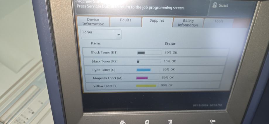 Stanje brojača je vidljivo na slikama, potrošni su svi OK, toneri u prosjeku preko 50%.