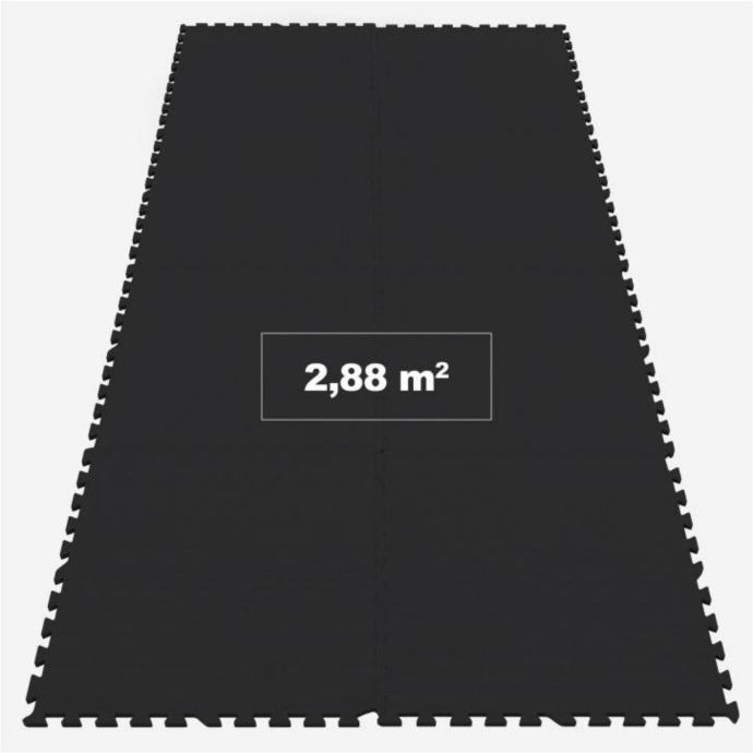 Više mogu fleksibilno spajati pomoću međusobnog dizajna. Svaka kvadratna prostirka ima dimenzije 60 cm sa svake strane i debljinu od 1,2 cm. Ovaj set pokriva približno . Osim fleksibilnosti proširivanja seta, EVA pjena ugodna za kožu također se lako čisti, što je čini idealnom za sve vrste podova.