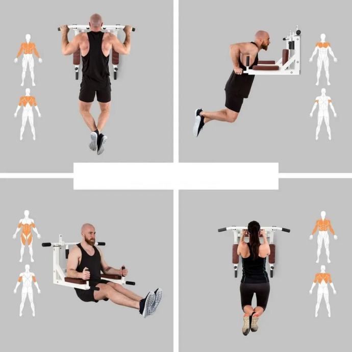 Na spravi je moguće izvoditi različite vrste vježbi (propadanja, zgibove, vježbe s gumom, sklekove....)