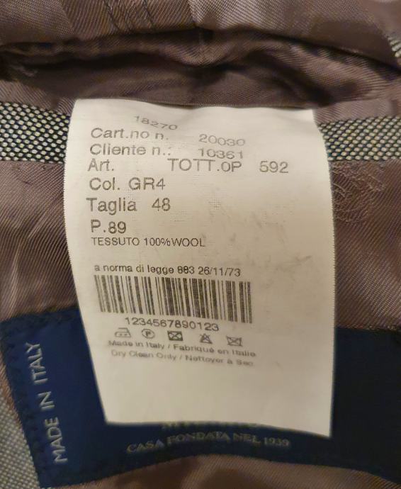 Veličina je 48/50, materijal Vitale Barberis Canonico vunena tkanina.