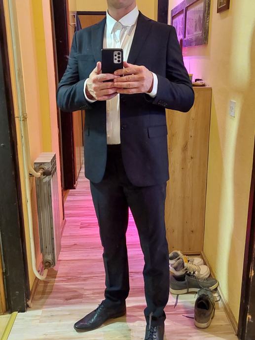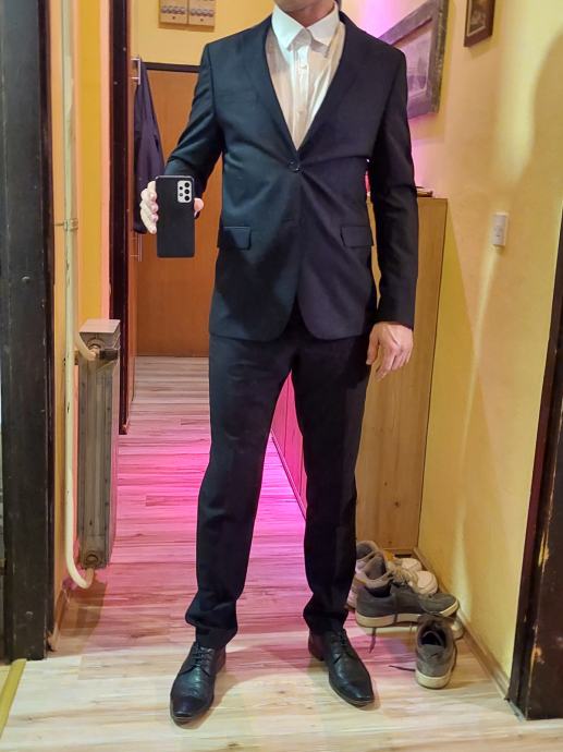 Prodajem crno slim fit odijelo kupljeno 2017 u Galileu plaćeno oko 2300 kuna. Jednom nošeno tada, dok sam imao manje od 80 kila.
