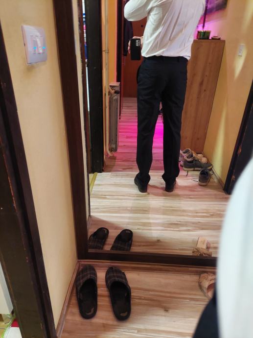 Hlace su proširene tako da ih ja sa 84kg jedva mogu zakopčati. Sako također. Nekome sa 75-80kg će stajati dobro.